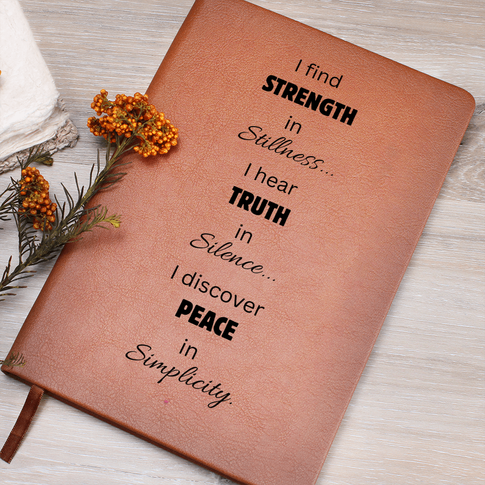 I find Strength in Stillness... I hear Truth in Silence... I discover Peace in Simplicity. Graphic Journal Vegan Leather