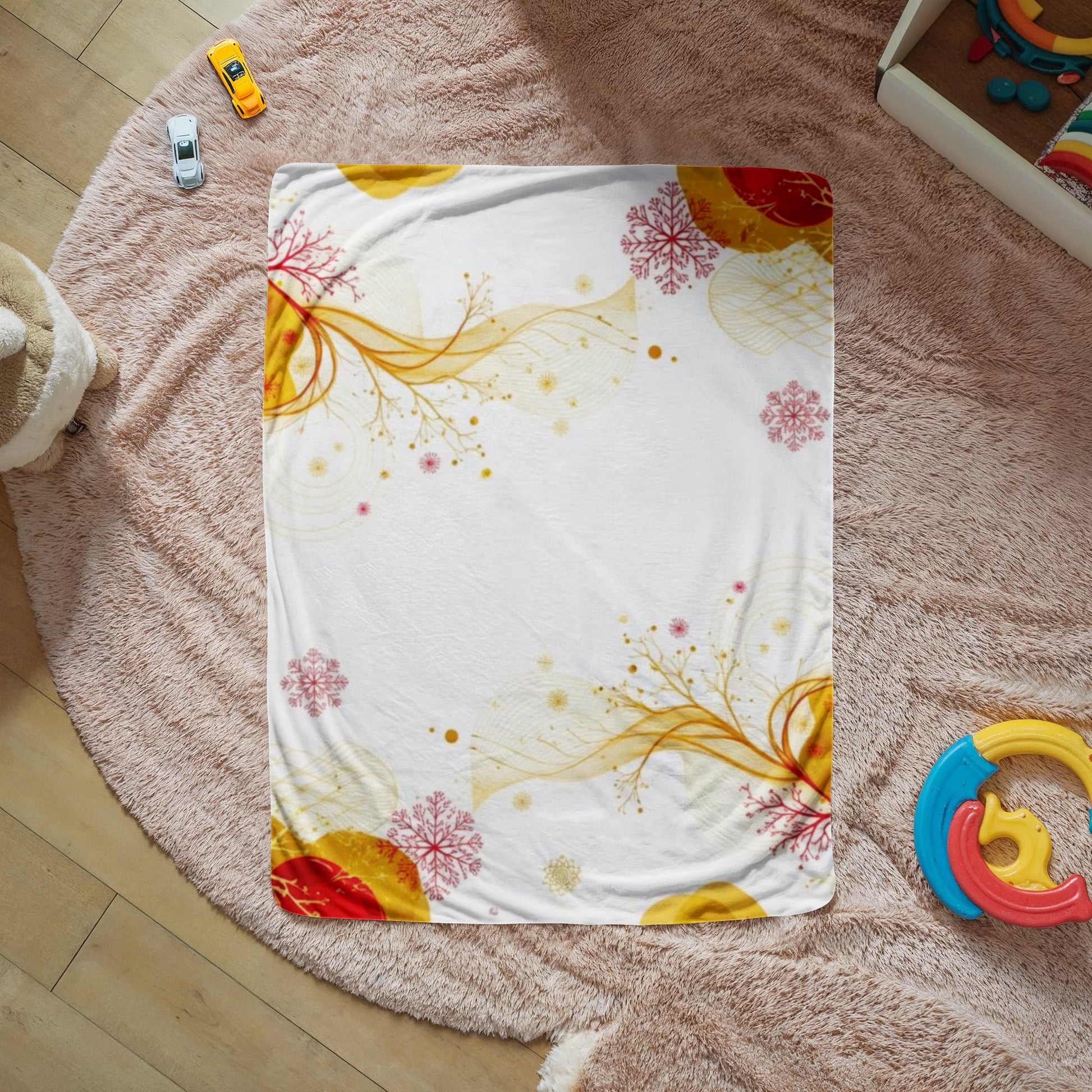 Golds and Reds on Elegant White on our Warmest Sherpa Fleece Blanket in 2 sizes