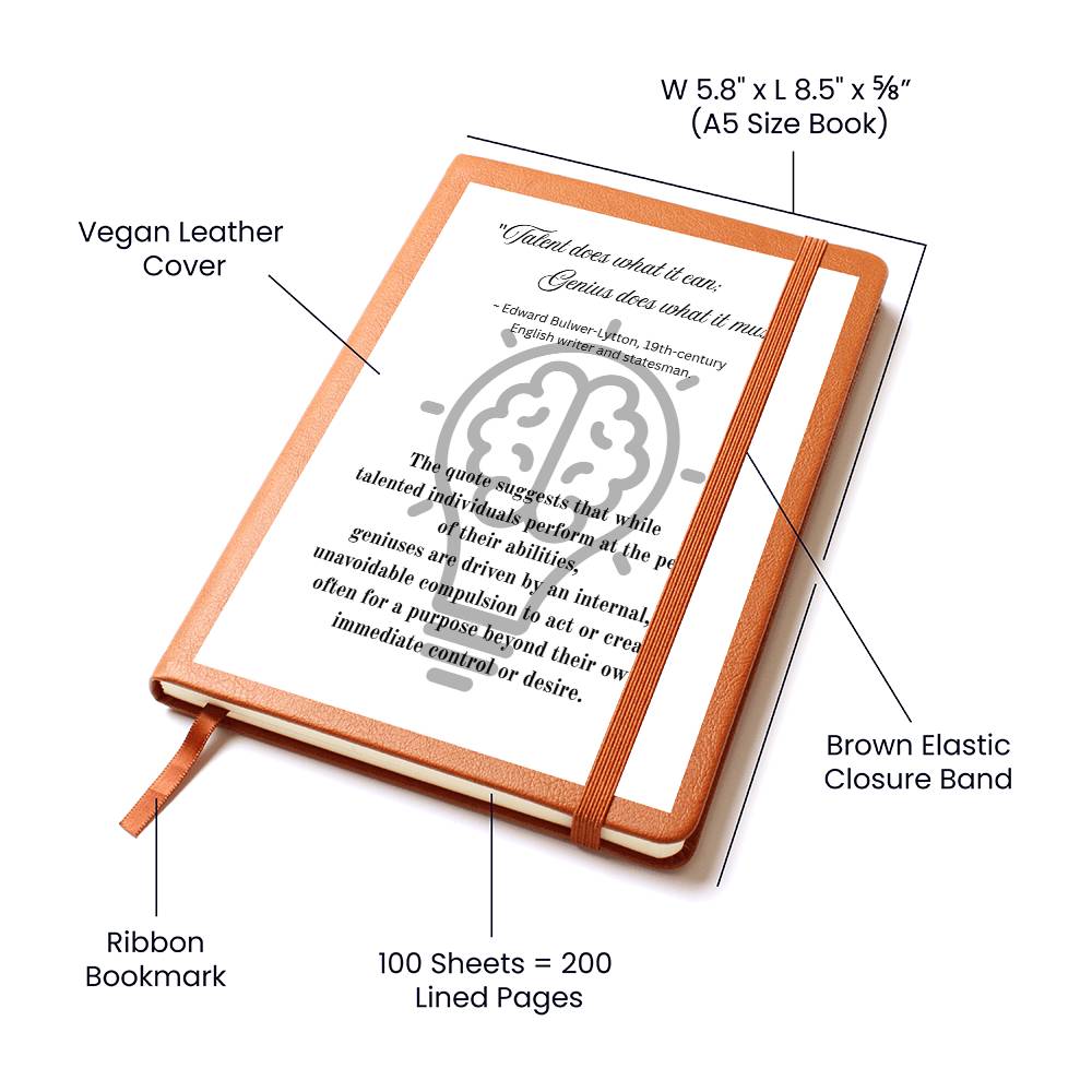 What better way to quiet your racing mind than with a clean slate? The Graphic Leather Journal is the perfect accessory for personal reminders, goal setting, or just getting organized. This vegan leather notebook allows you to write on the go thanks to its lightweight design. Plus, swapping between your important pages is easy thanks to the ribbon bookmark and elastic closure band. The unique front is professionally printed with vibrant colors - making your design last as long as your to-do list!