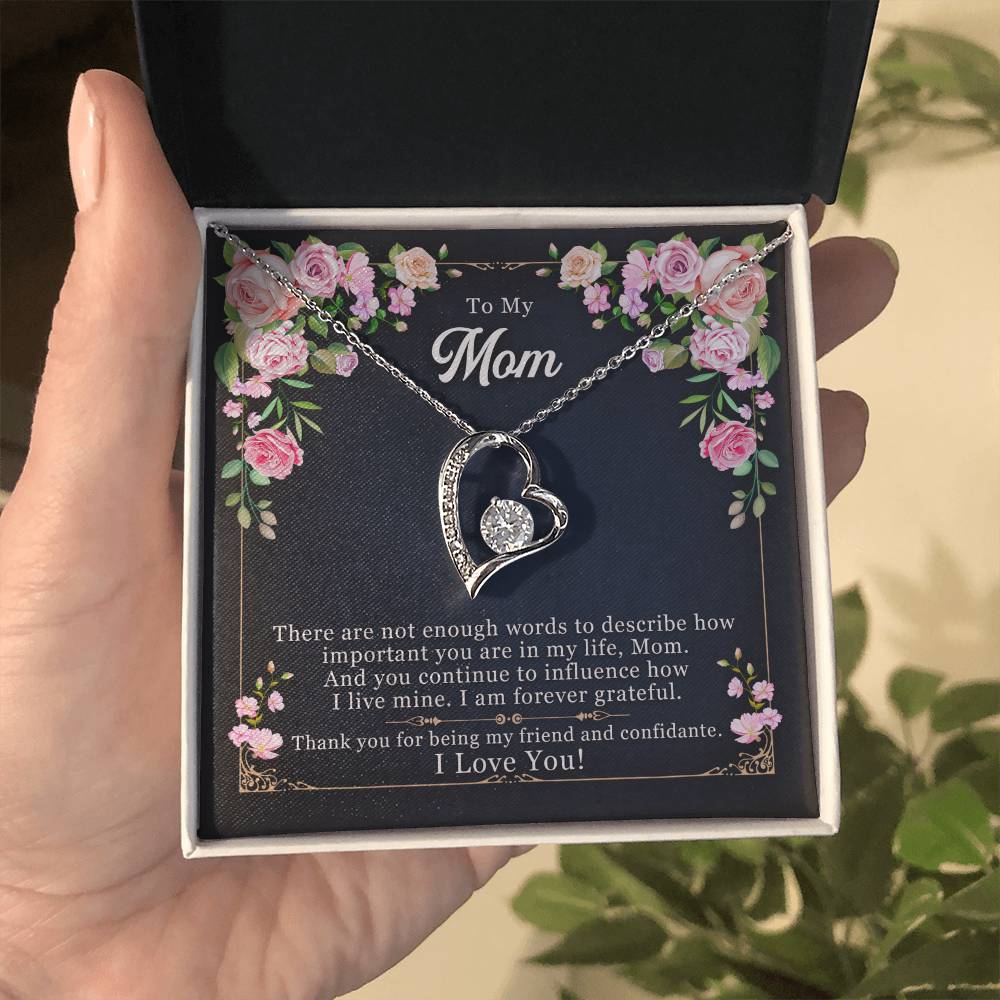 To My Mom, My Friend and Confidante - Forever Love Necklace + Black & White Gift Box or Mahogany Luxury Box w LED Light